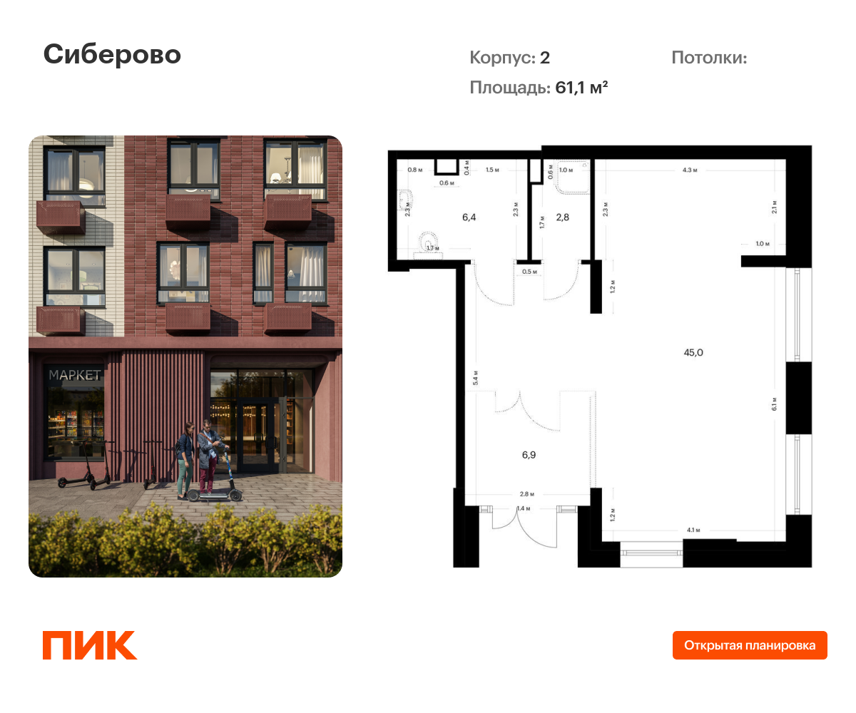 Купить ПСН 61 м² в ЖК Сиберово